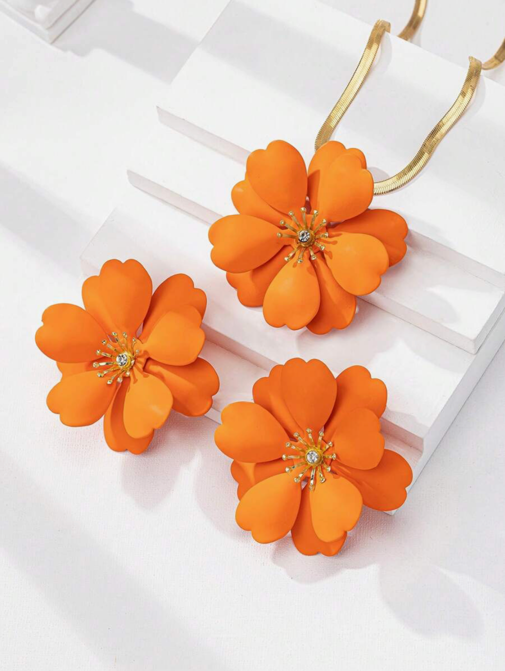 Affirmez votre style avec cette parure florale aux couleurs éclatantes, composée d’un collier avec pendentif fleur en cristal de goutte et de boucles d’oreilles assorties. Chic et audacieuse, elle attire tous les regards et s’adapte parfaitement aux vacances, aux événements festifs ou comme cadeau original.